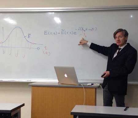 2016年3月30日には、英国インペリアル・カレッジ・ロンドンのOrtwin Hess教授を招き、特別講演を実施しました。本学のB4の学生も自身の研究テーマを英語で発表する機会を持ち、互いの研究テーマの情報交換を行いました。