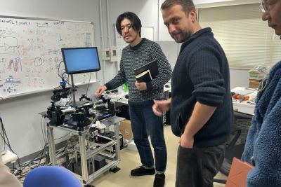 VLSI System Lab. Dr. Dennis Nieringer of Forschungszentrum Jülich GmbH in Germany, who is working on the design and modeling of quantum computer hardware systems, visited the Kobayashi Laboratory (VLSI System Lab.), the core laboratory of Kyoto Lab for a Greener Future in Kyoto Institute of Technology (KTI), on December 4th. Professor Kobayashi, Director of Kyoto Lab for a Greener Future, and Professor Takai and Associate Professor Shintani, members of the steering committee of Kyoto Lab for a Greener Future, welcomed him and introduced the classical computers hardware efforts being undertaken by both parties to realize scalable quantum computers, and exchanged information. Dr. Dennis Nielinger received his PhD from the University of Duisburg-Essen and is currently working as a scientific coordinator at the Jülich Research Center.