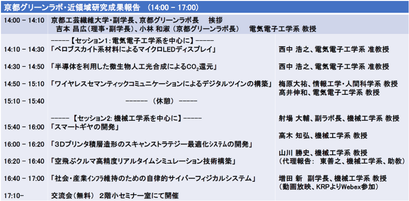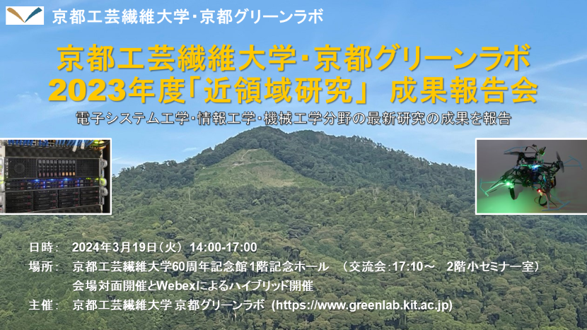 | 下記のごとく、京都工芸繊維大学・京都グリーンラボ、2023年度「近領域研究」成果報告会を開催いたしました。 |
